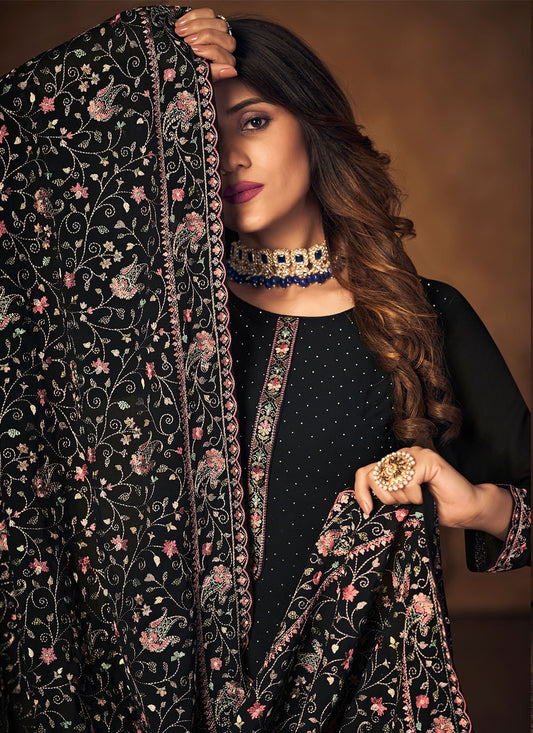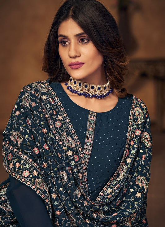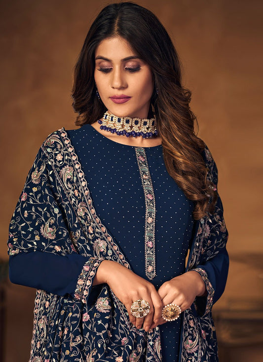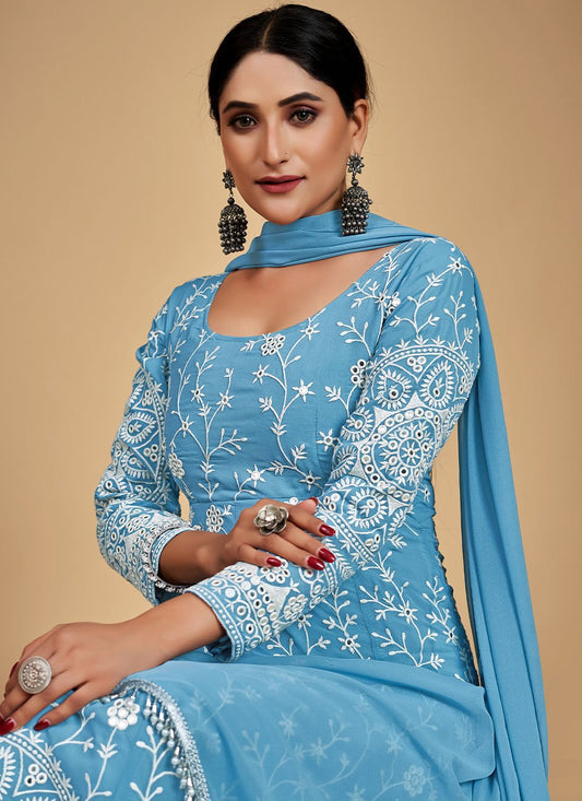 Palazzo Salwar Suit Georgette Cream Embroidered
