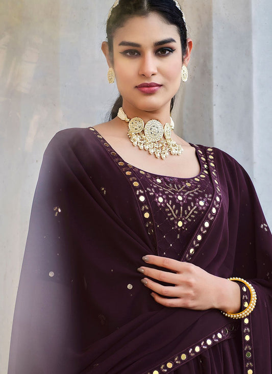 Anarkali Suit Georgette Purple Embroidered Salwar