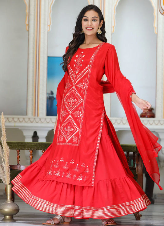 Palazzo Salwar Suit Georgette Maroon Crystals