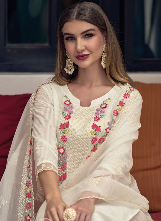 Salwar Suit Cotton Off White Embroidered