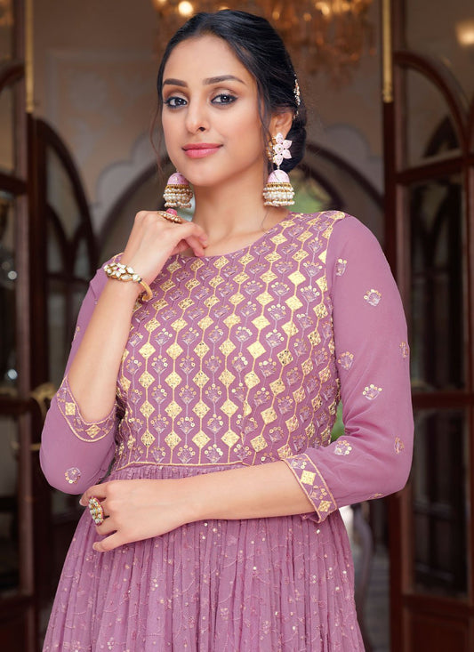 Anarkali Suit Georgette Lavender Embroidered Salwar