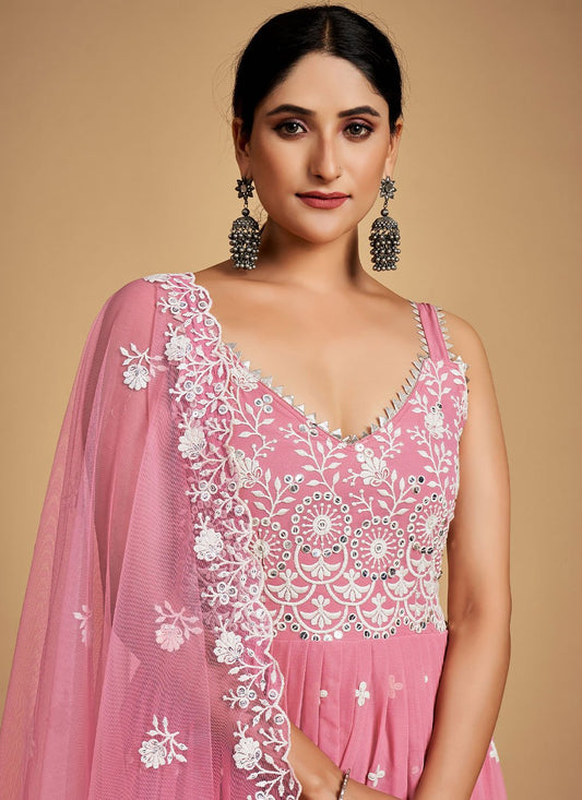 Anarkali Suit Georgette Pink Sequins Salwar