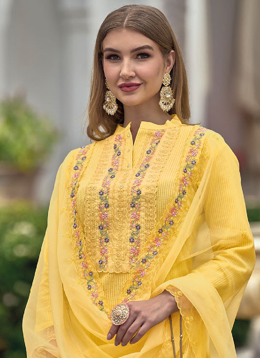 Salwar Suit Cotton Yellow Embroidered Salwar