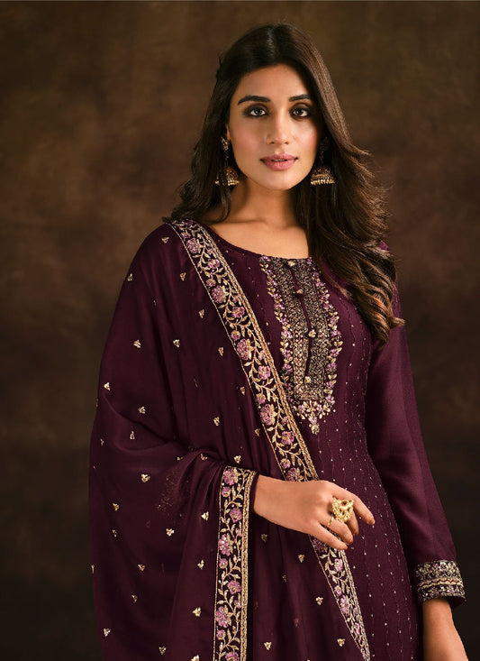 Palazzo Salwar Suit Georgette Purple Embroidered