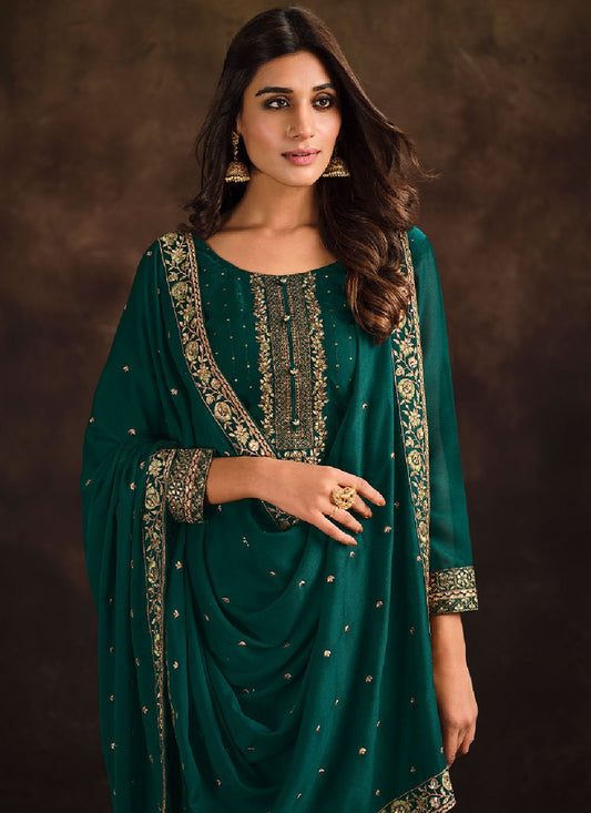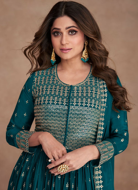 Anarkali Suit Georgette Teal Embroidered Salwar