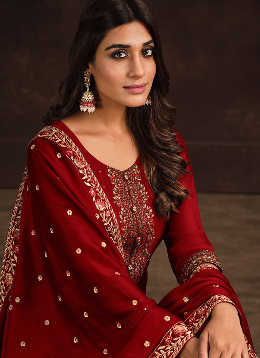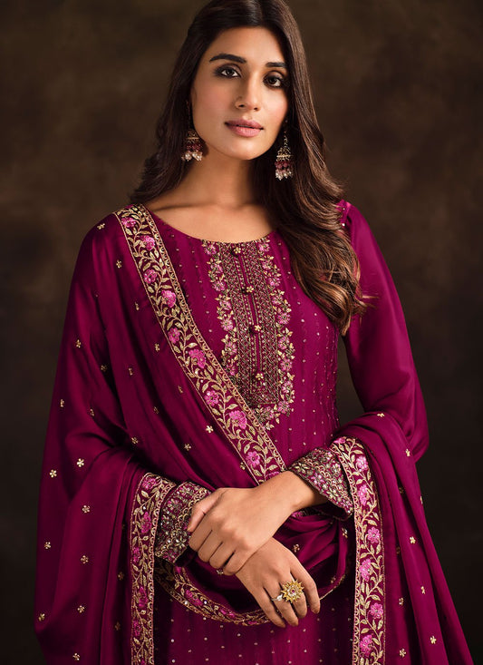 Trendy Suit Georgette Magenta Embroidered Salwar