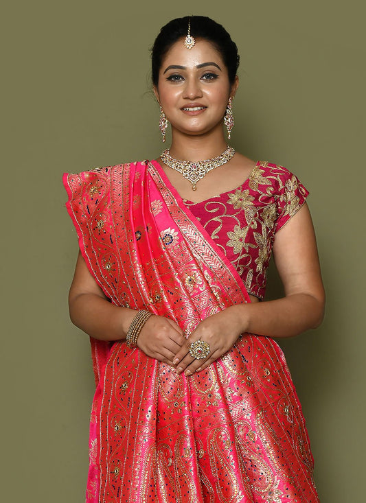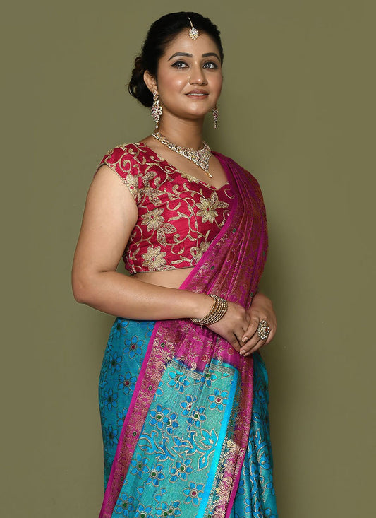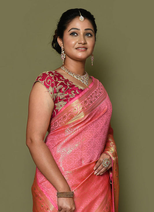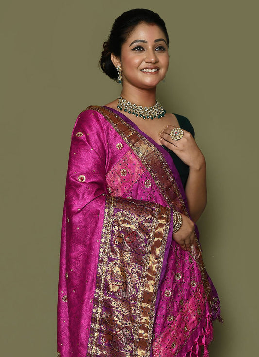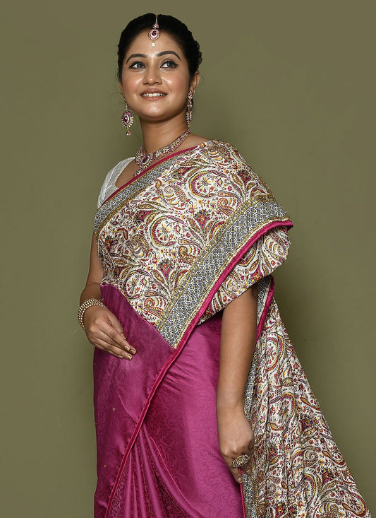 Contemporary Kanjivaram Silk Fuchsia Hand Work