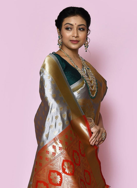Trendy Saree Kanjivaram Silk Grey Weaving