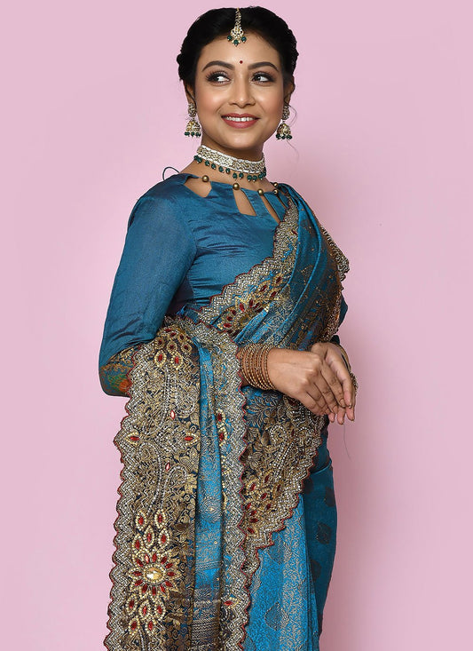 Classic Kanjivaram Silk Aqua Blue Weaving