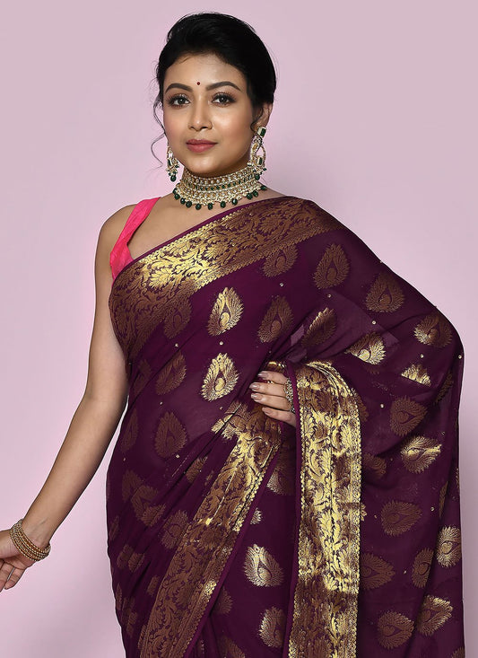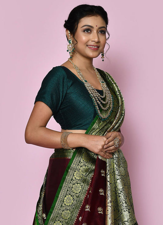 Trendy Saree Kanjivaram Silk Maroon Weaving