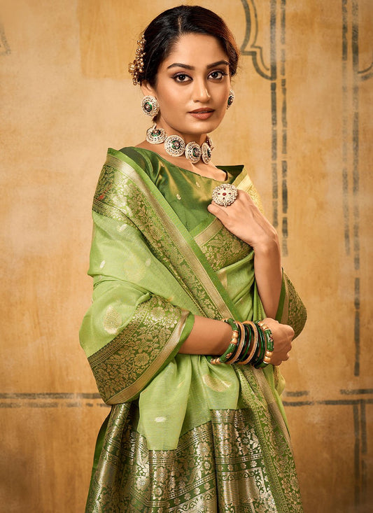 Contemporary Banarasi Silk Tissue Sea Green
