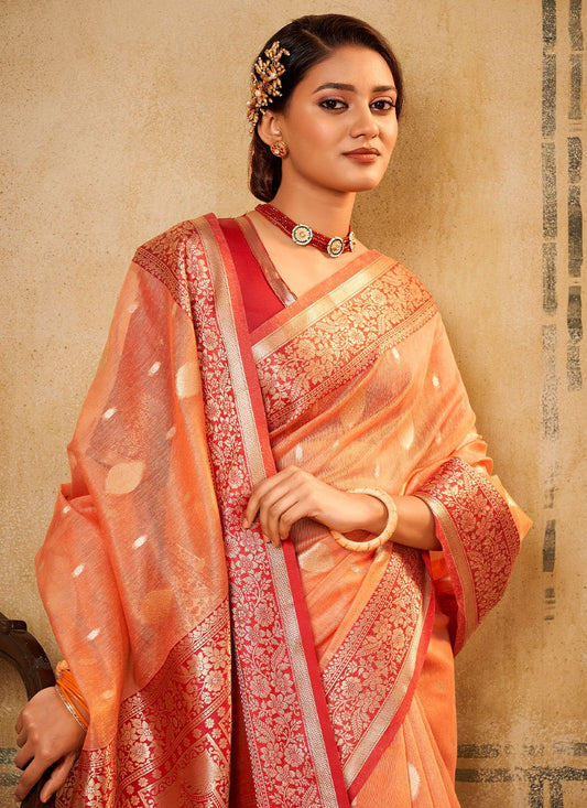 Trendy Saree Banarasi Silk Tissue Peach