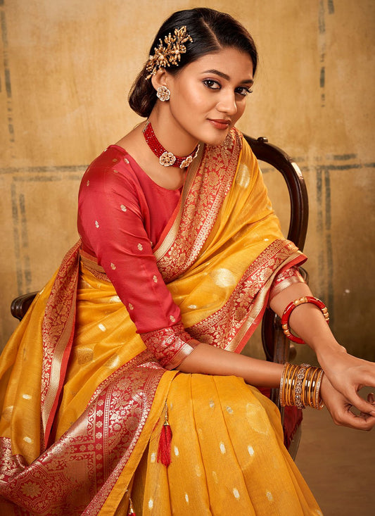 Classic Banarasi Silk Tissue Mustard Patch