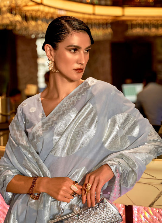 Contemporary Handloom Silk Blue Weaving Saree