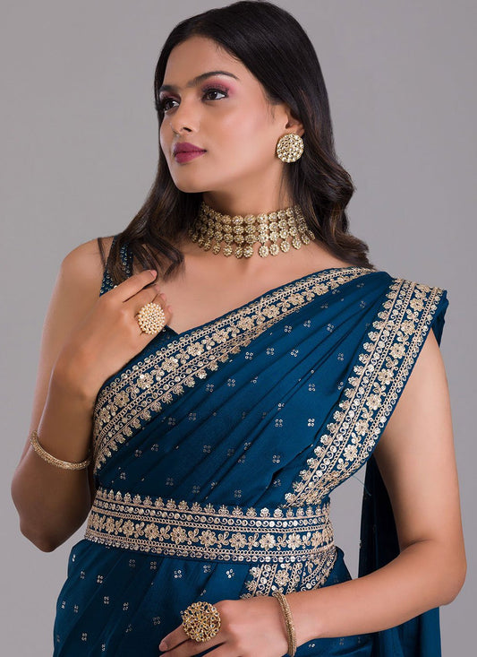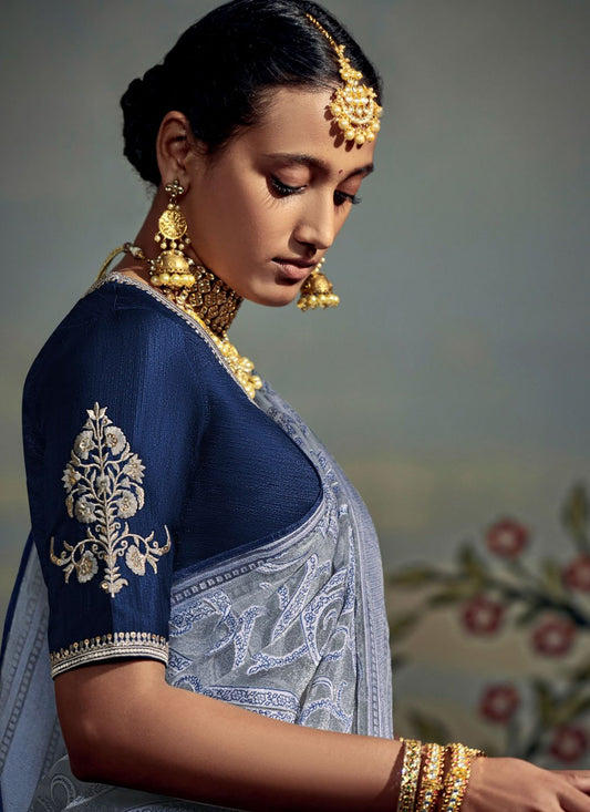 Classic Brasso Blue Fancy Work Saree