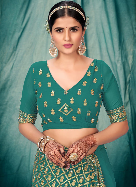 Trendy Saree Faux Georgette Teal Embroidered