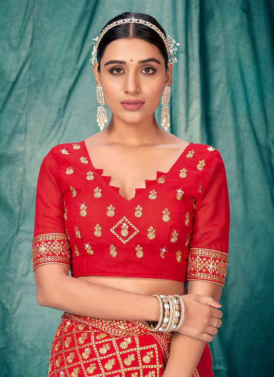 Traditional Saree Faux Georgette Red Embroidered