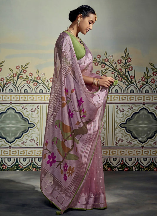 Trendy Saree Handloom Silk Lavender Weaving