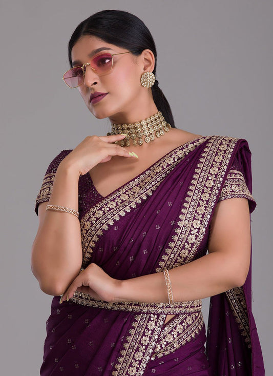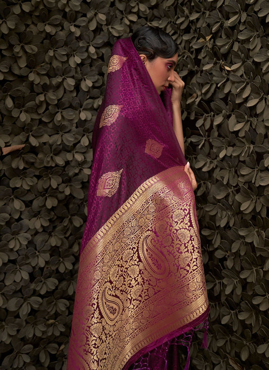Classic Satin Silk Purple Weaving Saree