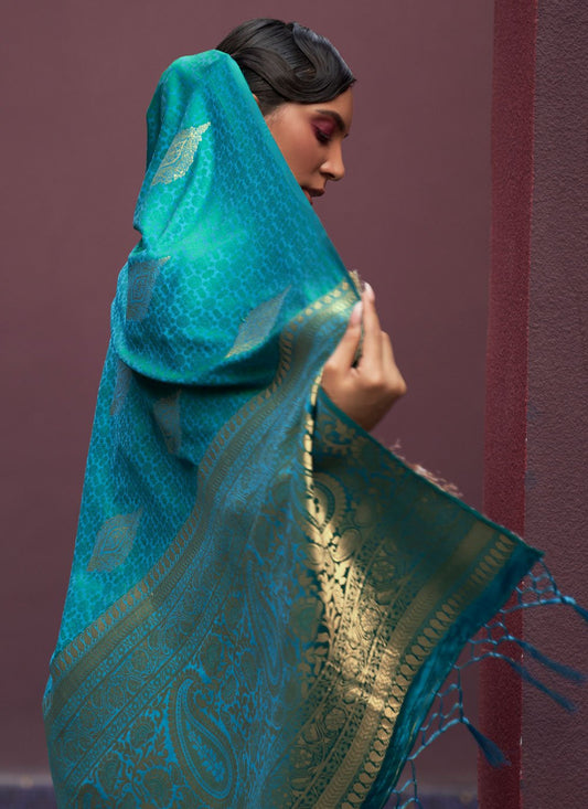 Classic Satin Silk Rama Weaving Saree