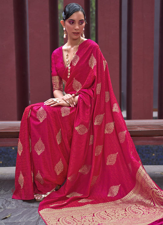 Contemporary Satin Silk Rani Weaving Saree