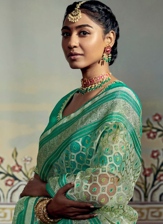 Contemporary Brasso Sea Green Fancy Work