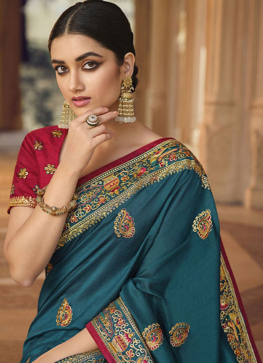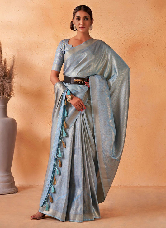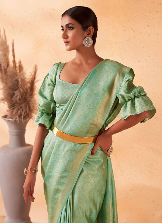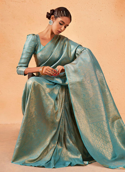 Classic Kanjivaram Silk Turquoise Weaving Saree