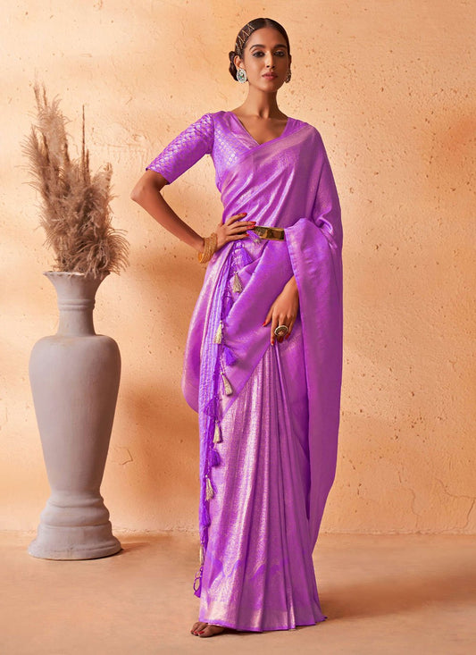 Contemporary Kanjivaram Silk Violet Weaving Saree