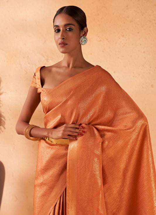 Trendy Saree Kanjivaram Silk Peach Weaving