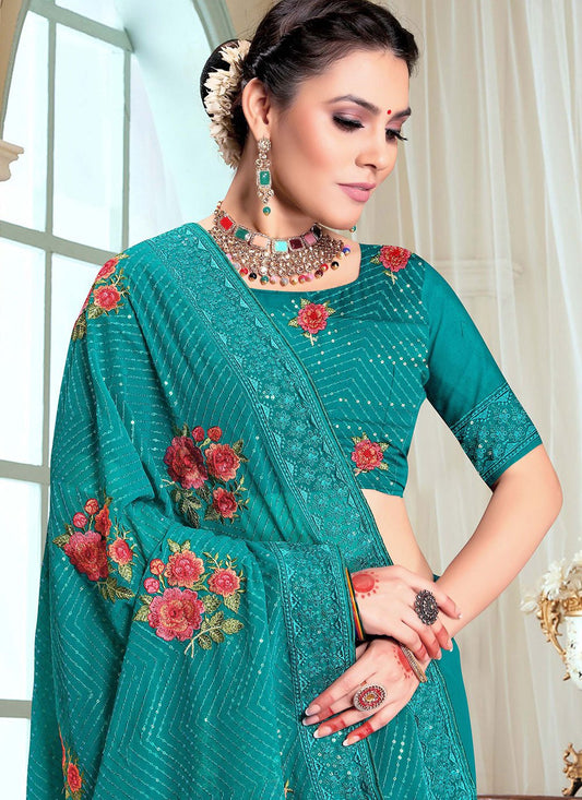 Contemporary Silk Aqua Blue Embroidered Saree