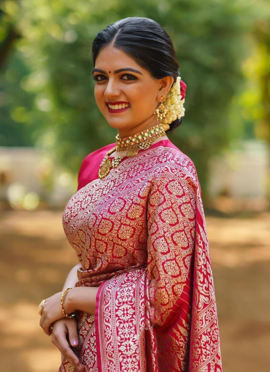 Trendy Saree Banarasi Silk Red Jacquard