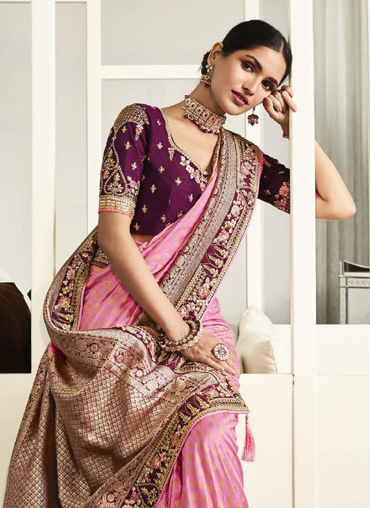 Designer Silk Pink Embroidered Saree