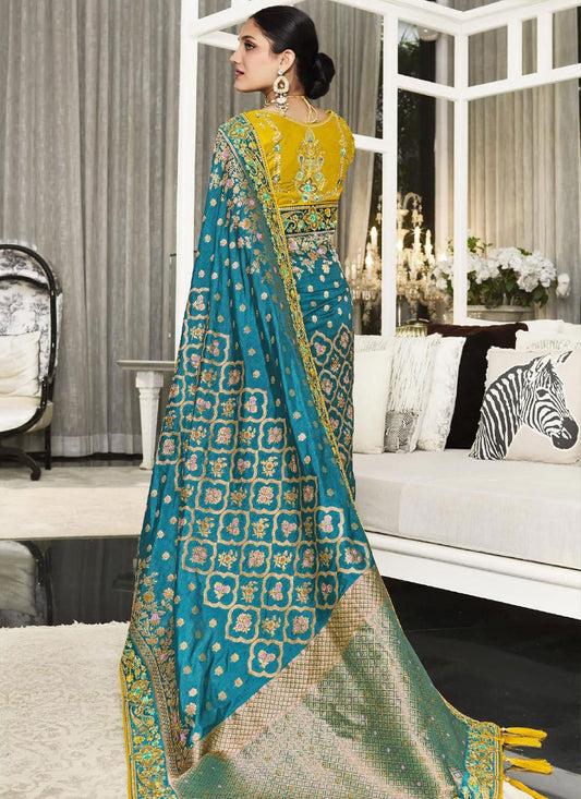 Classic Silk Teal Embroidered Saree