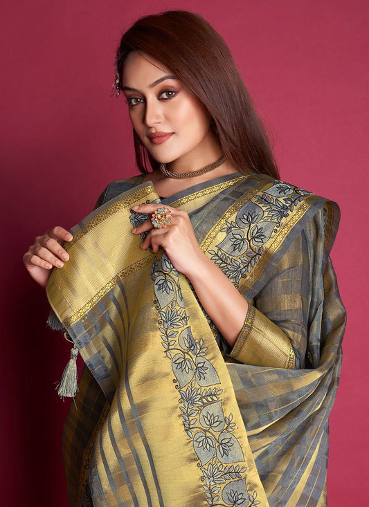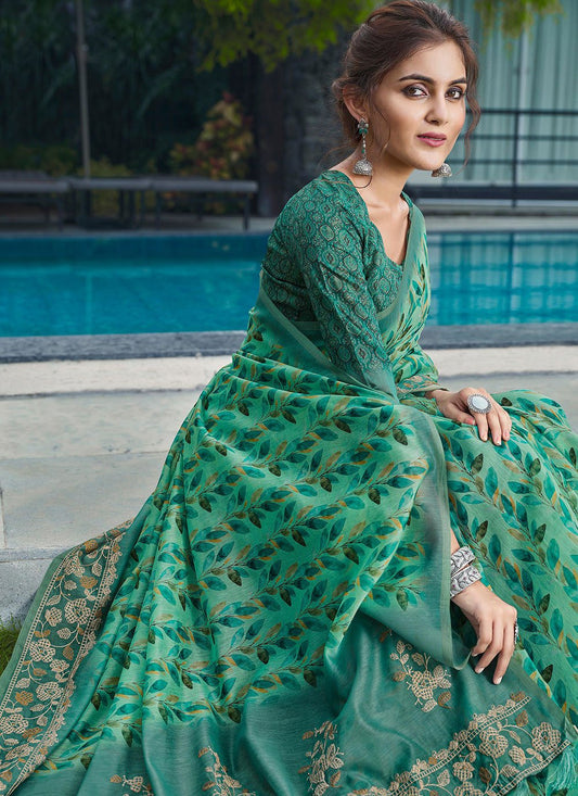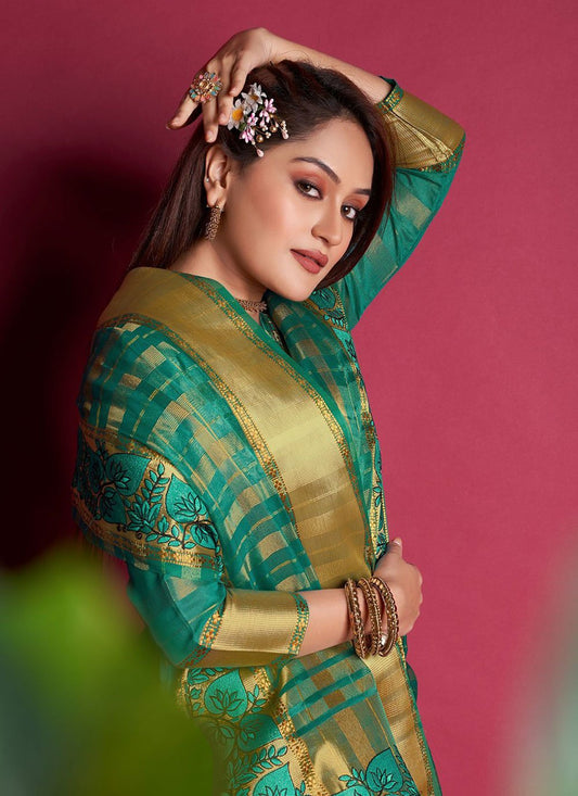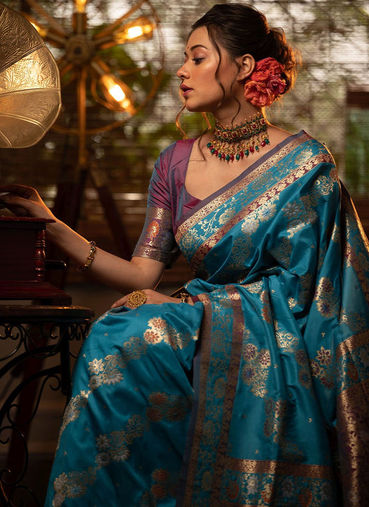 Trendy Saree Banarasi Silk Turquoise Weaving
