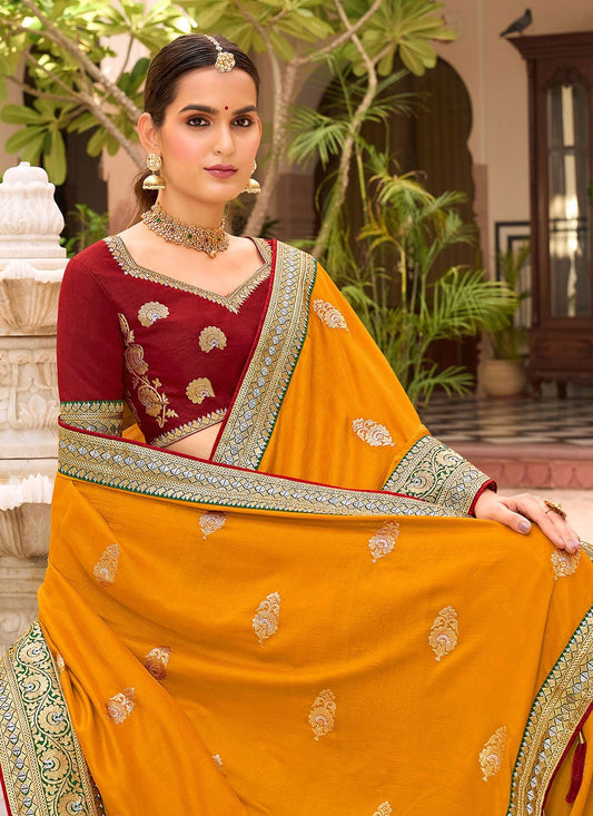 Contemporary Kanjivaram Silk Mustard Hand Work