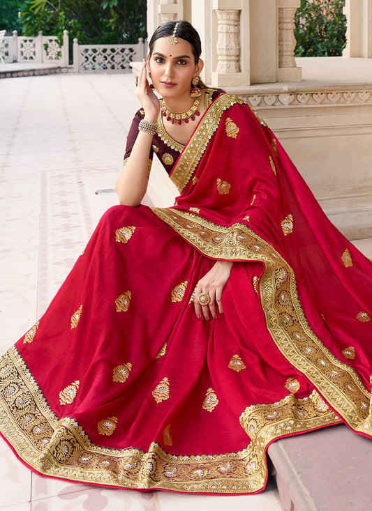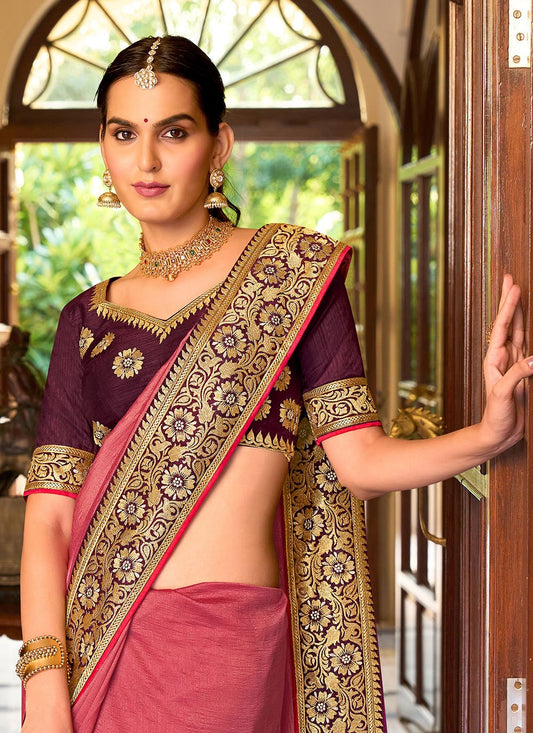 Contemporary Vichitra Silk Pink Embroidered Saree
