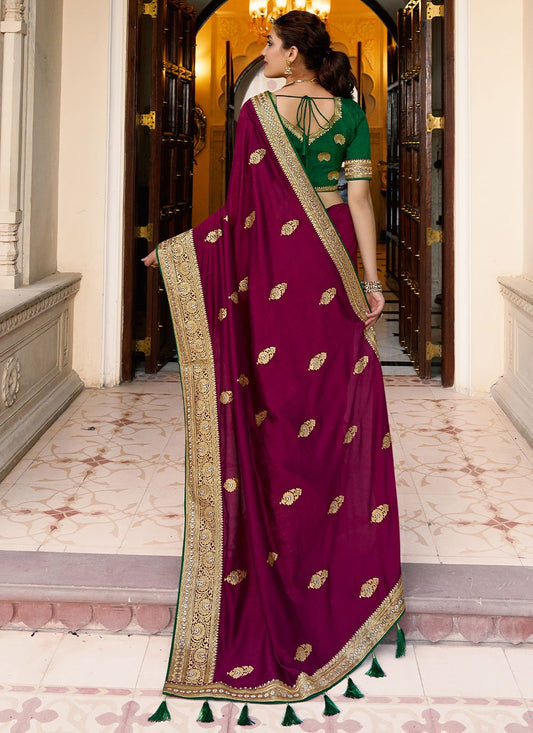 Contemporary Vichitra Silk Purple Embroidered Saree