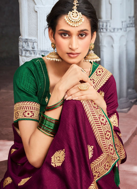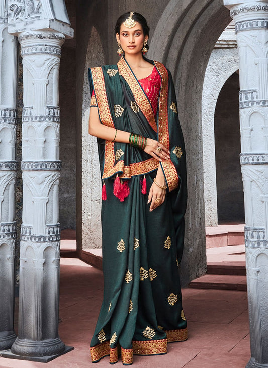 Classic Vichitra Silk Turquoise Embroidered Saree