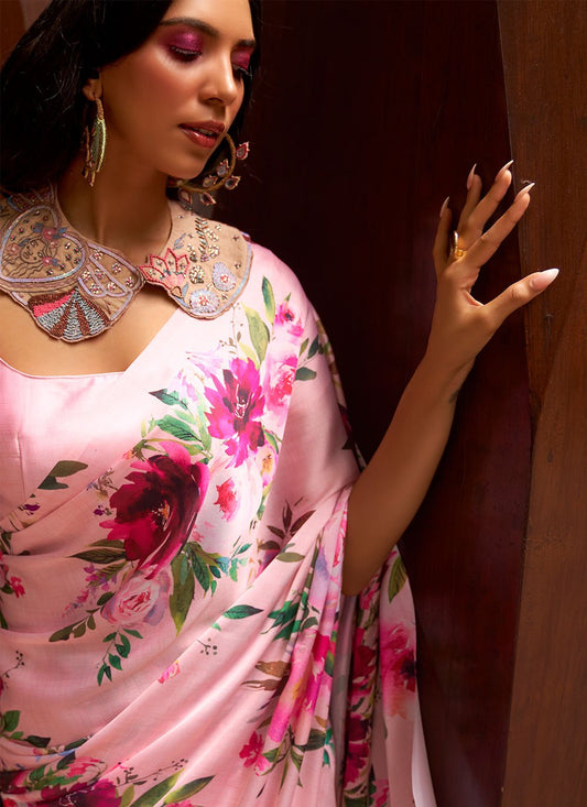 Silk Saree Kanchipuram Silk Pink Embroidered