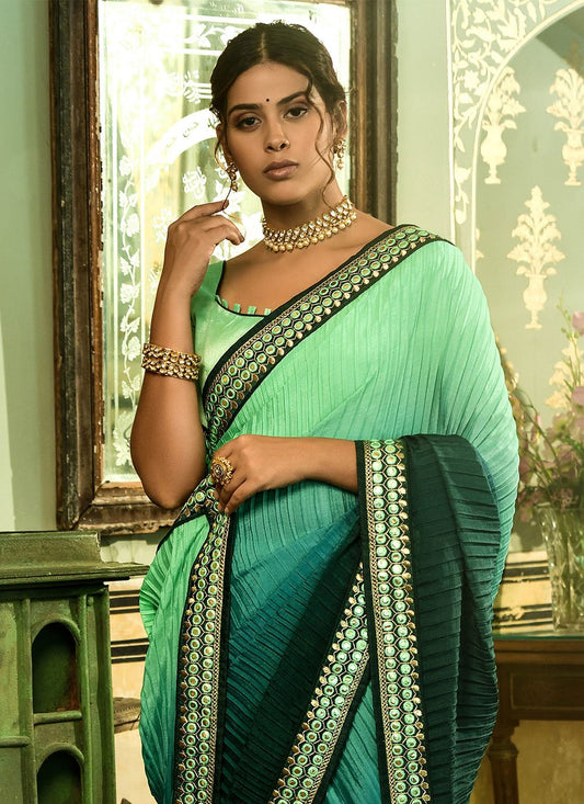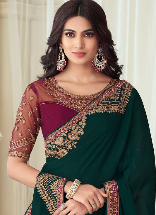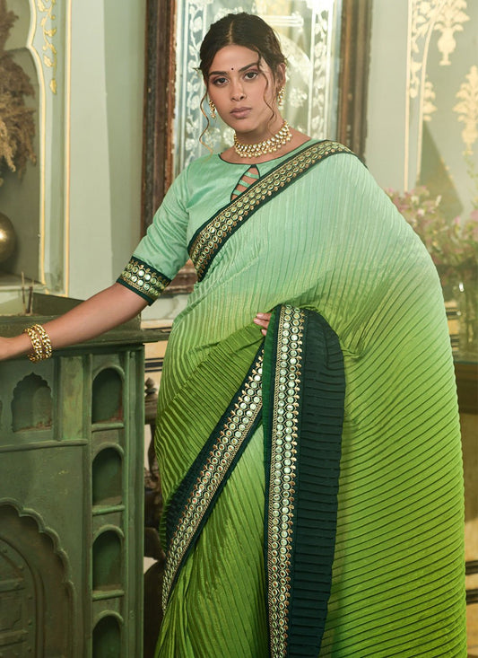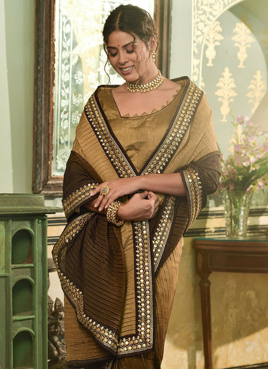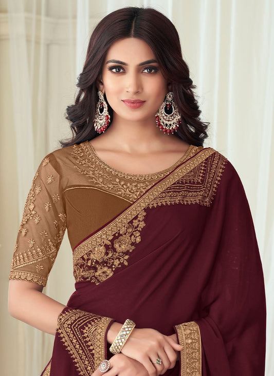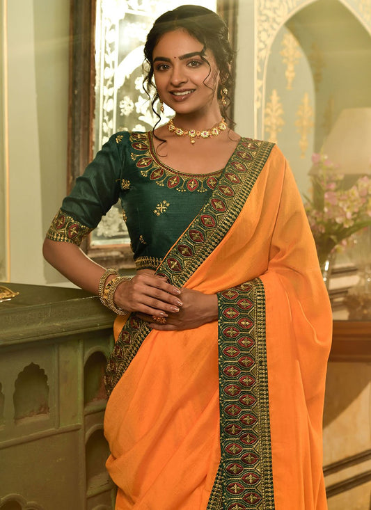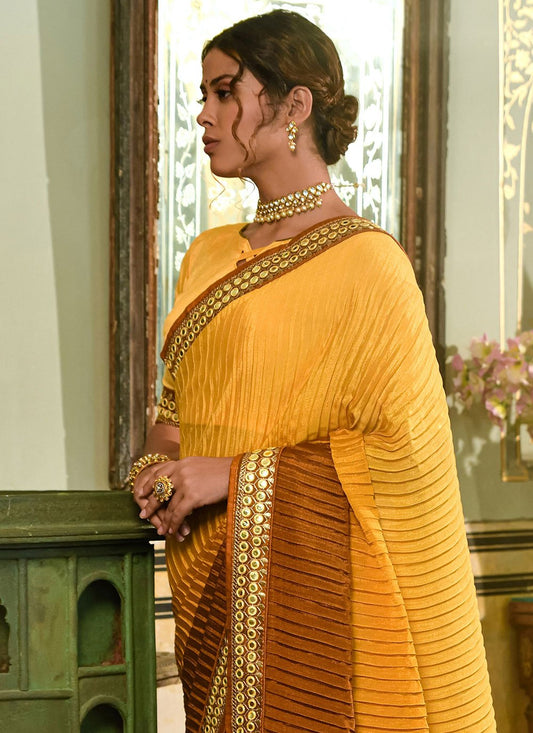Classic Chiffon Satin Morpeach Swarovski Saree