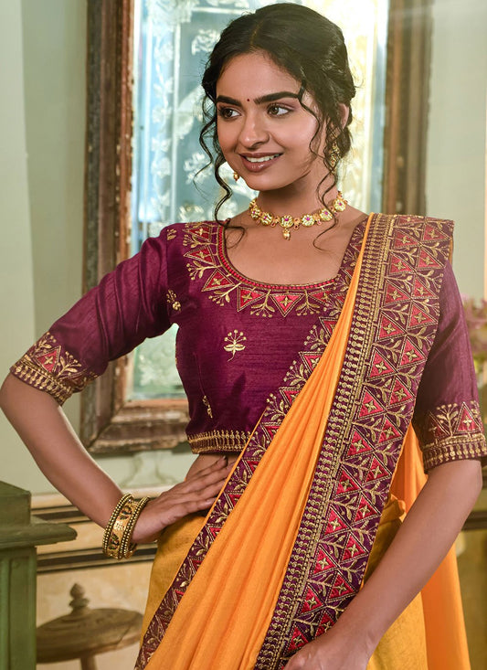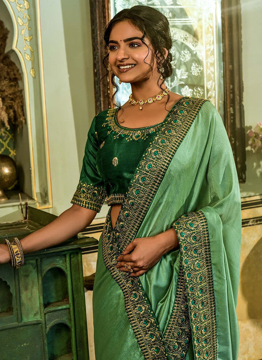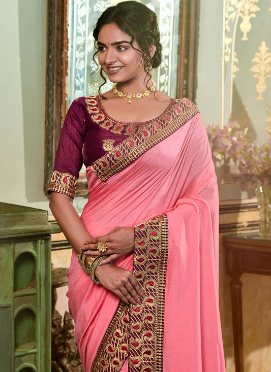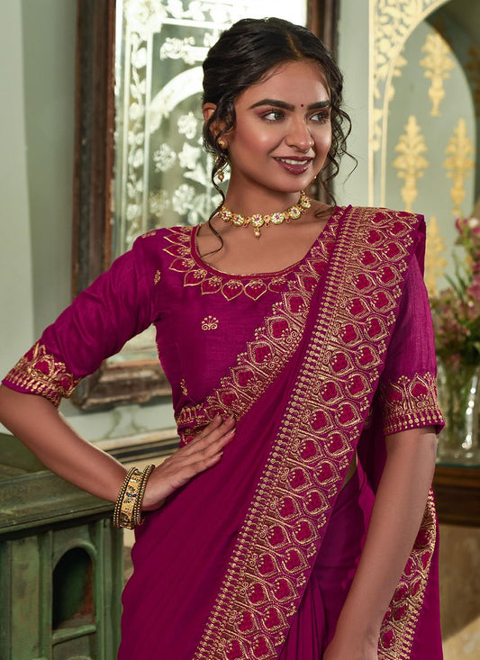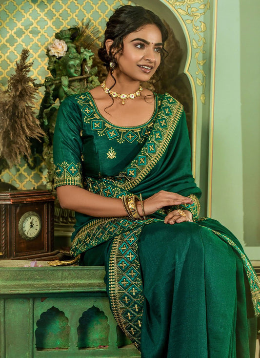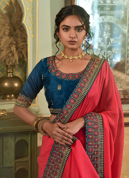 Contemporary Vichitra Silk Blue Embroidered Saree