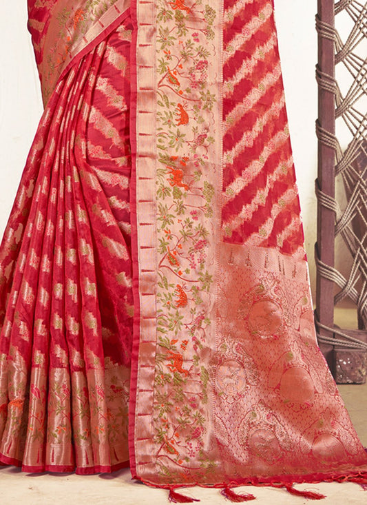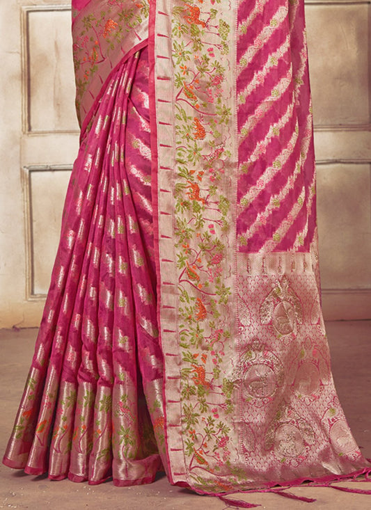Traditional Saree Banarasi Silk Fuchsia Weaving