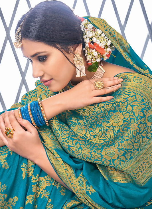 Classic Chiffon Viscose Turquoise Weaving Saree