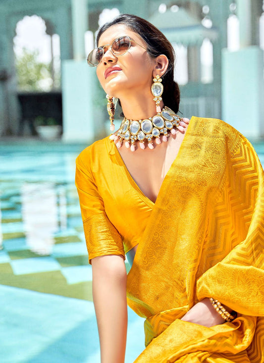 Contemporary Kanjivaram Silk Mustard Woven Saree