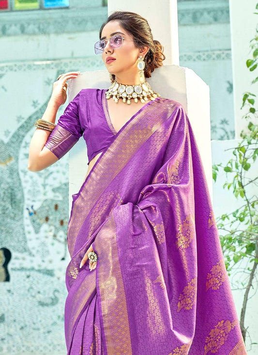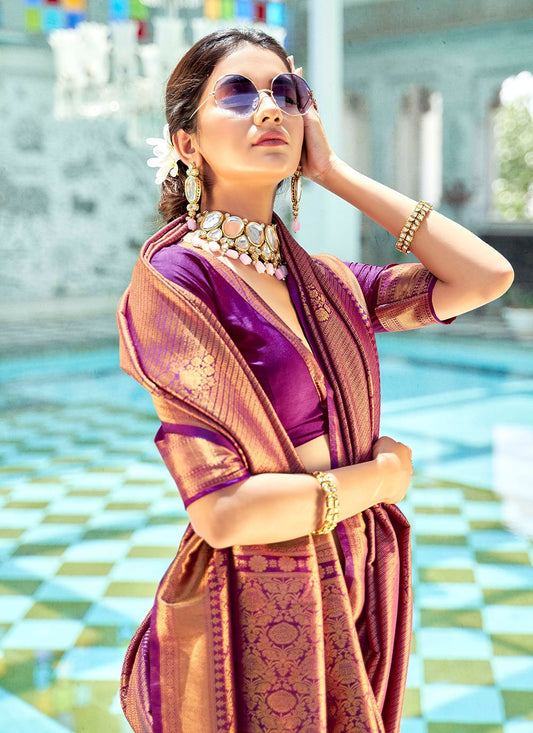 Contemporary Kanjivaram Silk Maroon Woven Saree