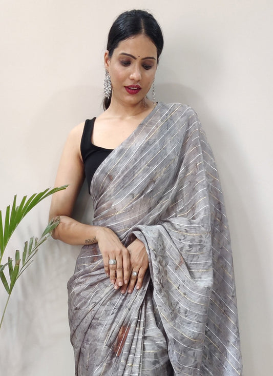 Traditional Saree Chiffon Viscose Grey Weaving