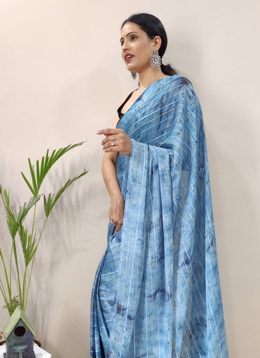 Trendy Saree Chiffon Viscose Aqua Blue