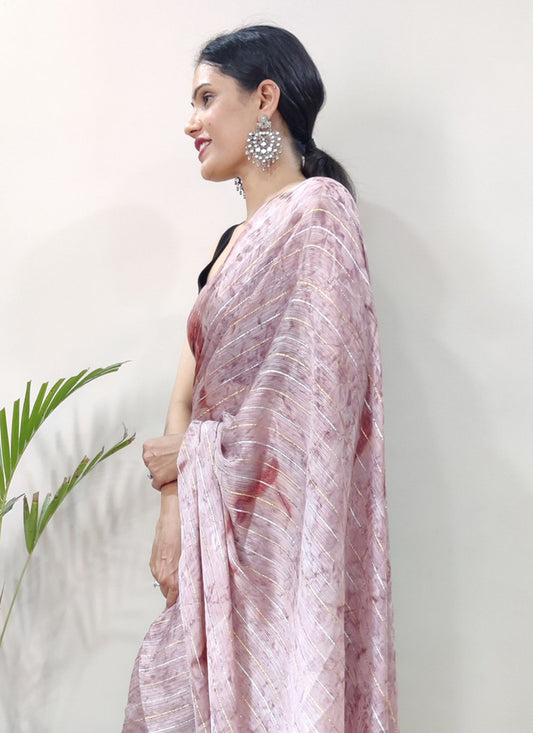 Contemporary Linen Tissue Pink Embroidered Saree