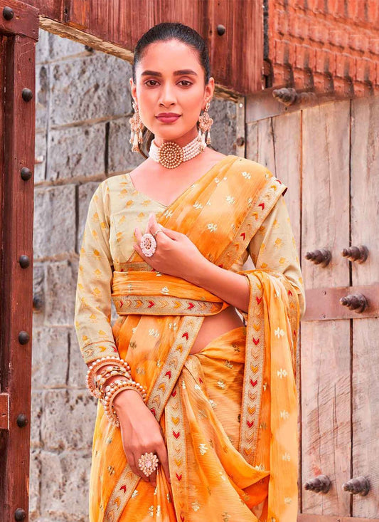 Trendy Saree Chiffon Yellow Embroidered Saree