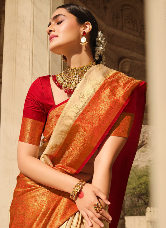 Classic Silk Cream Patch Border Saree